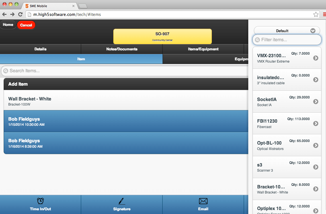 ability to access and update their work orders, capture signature, add new orders, and add material, labor and services to orders.